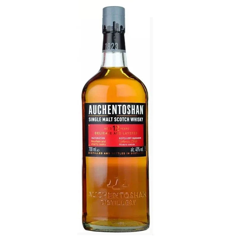 On the nose, Auchentoshan 12 Year Old presents a fresh and inviting aroma with notes of toasted almonds, caramelized toffee, and a hint of citrus zest. The palate is rich and smooth, offering flavors of creamy vanilla, green apple, and a touch of nuttiness, followed by a subtle hint of ginger and a long, slightly dry finish.