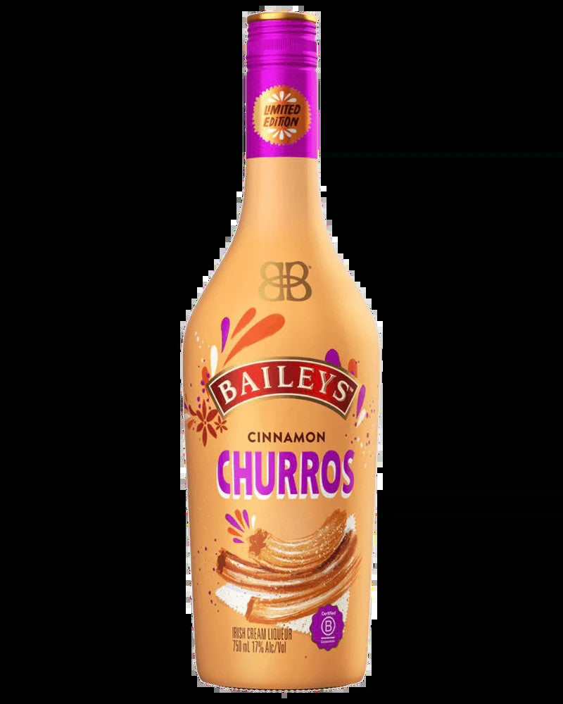 Introducing NEW Baileys Cinnamon Churros Liqueur, a perfect balance of Irish Whisky, savory cinnamon and warm vanilla notes for a creamy, flavor-filled, invigorating taste. Enjoy poured over ice, stirred into hot or cold coffee, or shaken into cocktails.