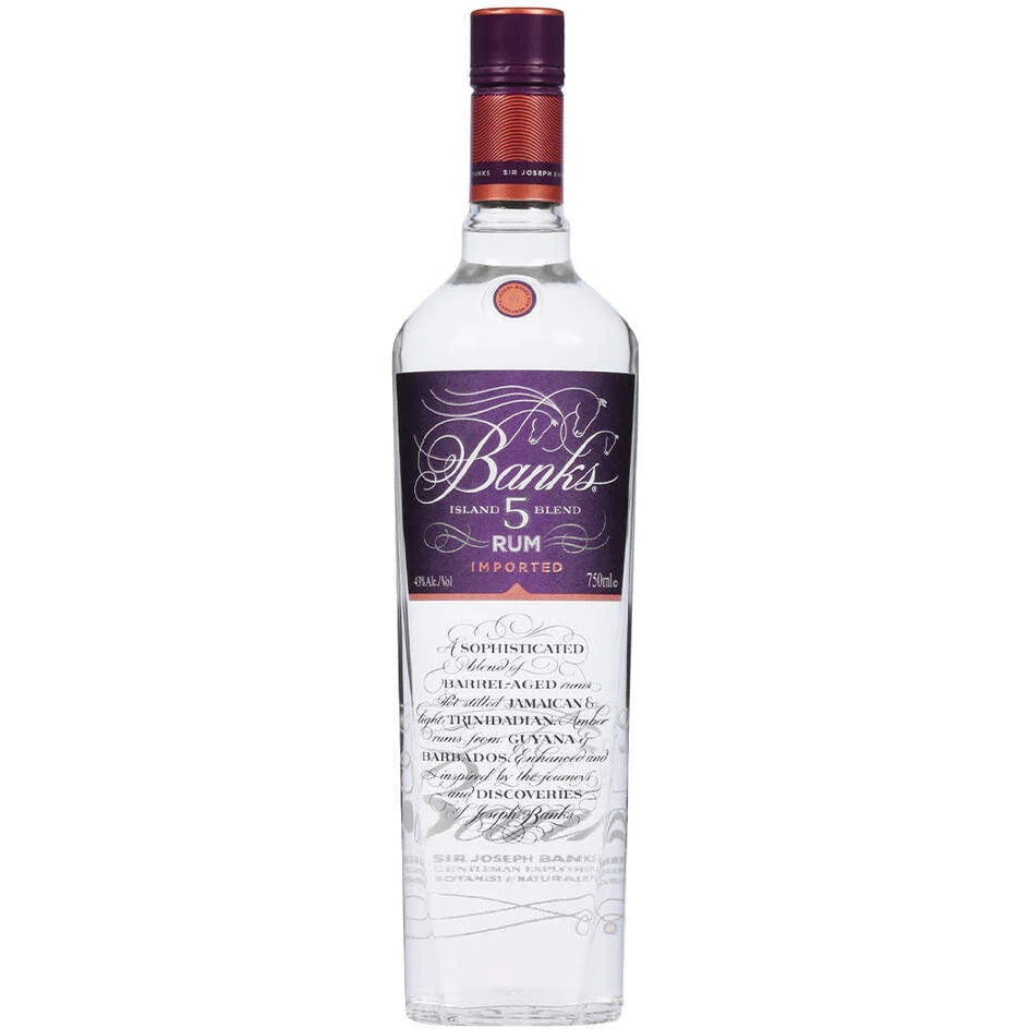 BANKS 5 Island Blend is a flavorful white rum with unprecented character and depth. A unique blend of 20 exceptional rums, some young and some aged, from 5 different origins: Jamaica, Trinidad, Barbados, Guyana and Java. The blend is carefully charcoal filtered to remove the pale color but retain its incredible aroma and flavors, making it extremely versatile and perfect for mixology.