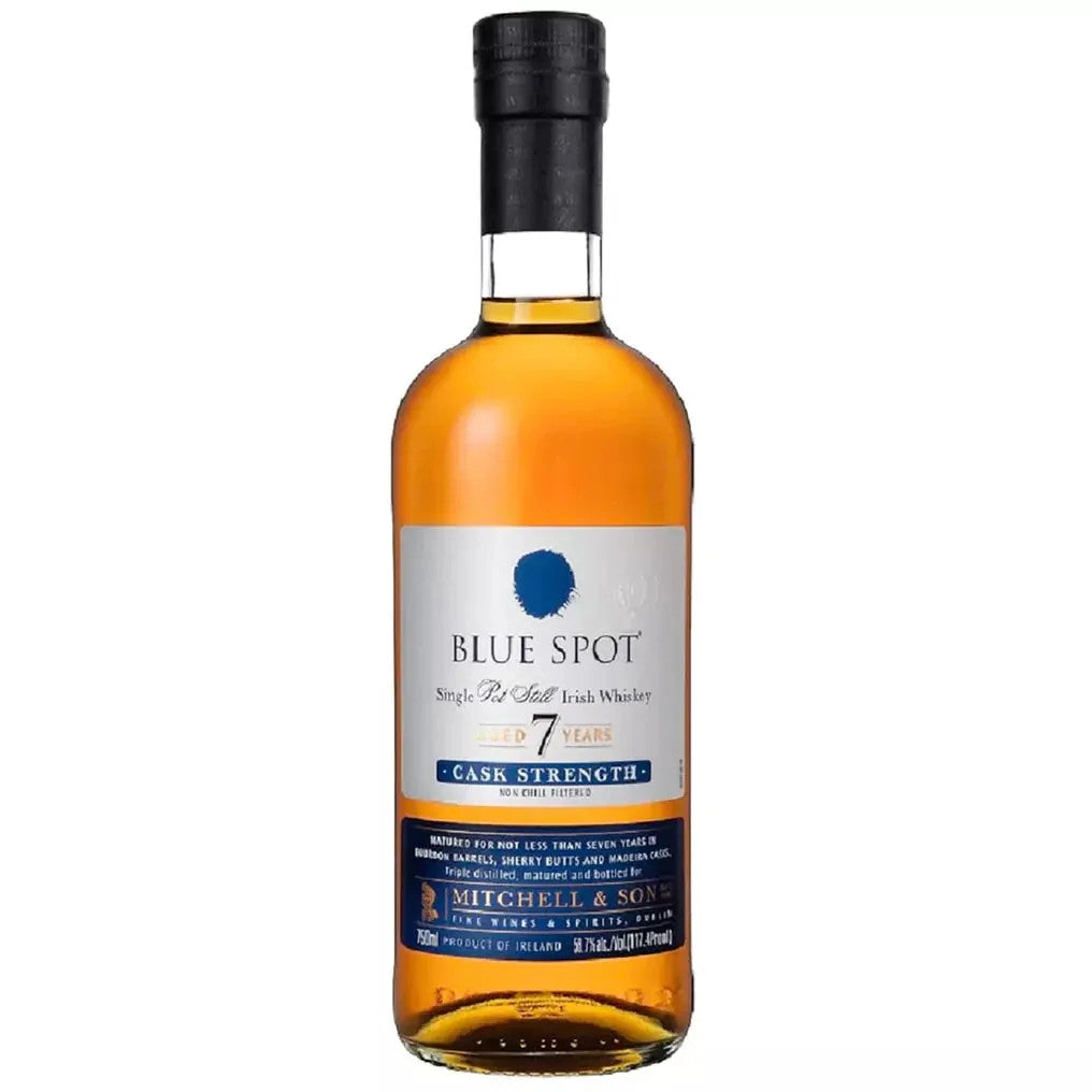 Embodying the unmistakable qualities of Single Pot Still Irish Whiskey, Blue Spot is matured for no less than 7 years in Bourbon casks, Sherry butts, and Portuguese Madeira casks all bottled at cask strength for you to enjoy!
