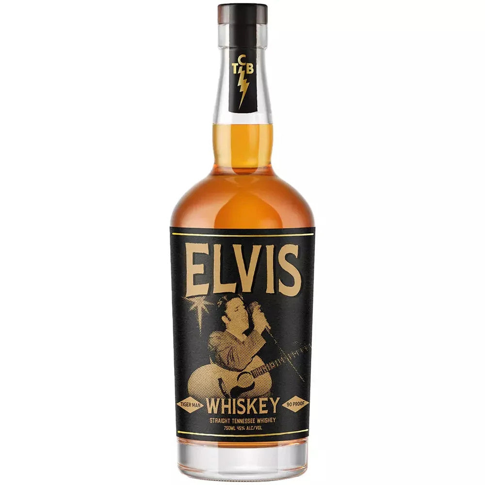 Old gold in color, with an aroma of toasted oak and sweet corn with a hint of citrus and apple. Flavor notes of sweet-toasted maple, roasted creme brulee, and subtle notes of a granny smith apple and caramel lead to a very balanced, long, soft, sweet and genuine great finish. Mash Bill: 80% Corn, 10% Rye, 10% Malted Barley. Elvis Whiskey is sourced and blended by an expert team of industry veterans and bottled in Tennessee, where Elvis began his career and called home. 90 Proof.