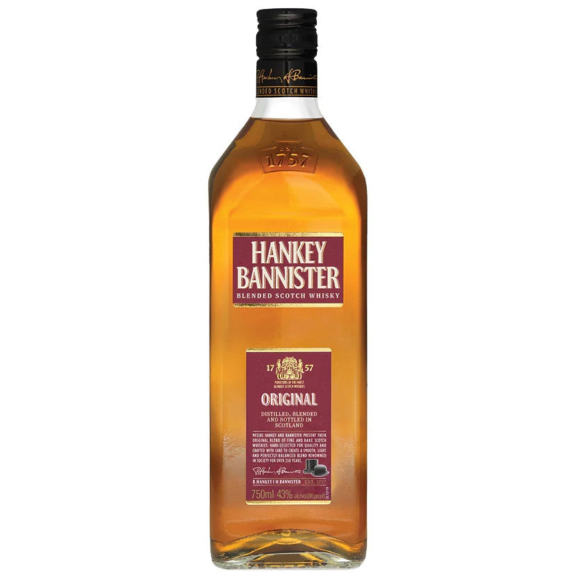 Messrs Hankey and Bannister present their Original blend of fine and rare Scotch whiskies. Hand-selected for quality and crafted with care to create a smooth, light, and perfectly balanced blend renowned in society for over 250 years.