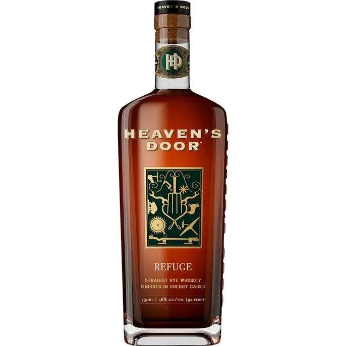 Heaven's Door "Refuge" Straight Rye Whiskey is aged for six years, blended to ensure consistent maturity has been reached and then finished in Amontillado Sherry casks for no less than 6 months. Our Straight Rye Whiskey boasts a sweet, fruity character that is distinctively rich and refined with lively notes of dried fruits and a delicate, spicy finish.