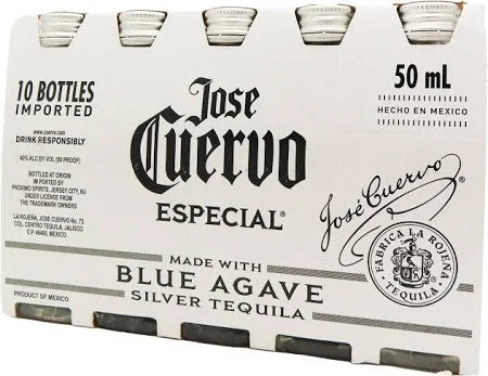 Experience the smoothness of Jose Cuervo Tradicional Silver Tequila in this 10-pack of 50ml bottles. Crafted by master distillers at La Rojeña, this silver tequila boasts a unique blend with tones of agave, caramel, and fresh herbs. Perfectly balanced, it pairs excellently with citrusy dishes and grilled seafood, enhancing any meal with its refined flavor. Ideal for sipping or cocktails.