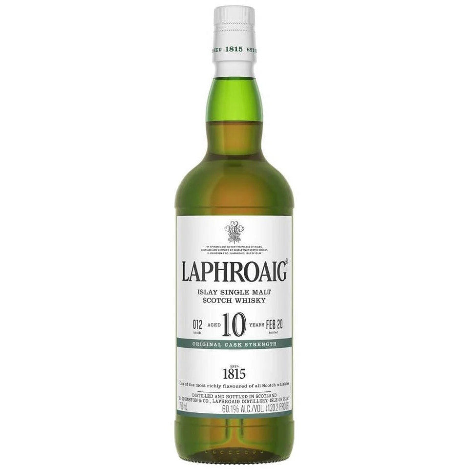 Laphroaig Cask Strength is an Islay Scotch, bottled at natural distillery strength and non-chill filtered. It has all the genuine depth, taste and texture associated with sampling whisky at the source. Laphroaig whisky is matured in seasoned oak barrels, which are charred before filling to impart a slight sweet vanilla nuttiness. Laphroaig 10 Year Cask Strength is barrier-filtered, only just, to remove the small char particles. This means you can enjoy it exactly as we made it, with very little intervention. In extremes of temperature and when you add water it may appear a little cloudy – this is the natural condition of a peated whisky of such uncompromising purity. Adding a little water releases a rich aroma of peat smoke with some sweetness and strong hints of the sea. Emphatic, full bodied and utterly unforgettable – we like to think it's the purists' choice.