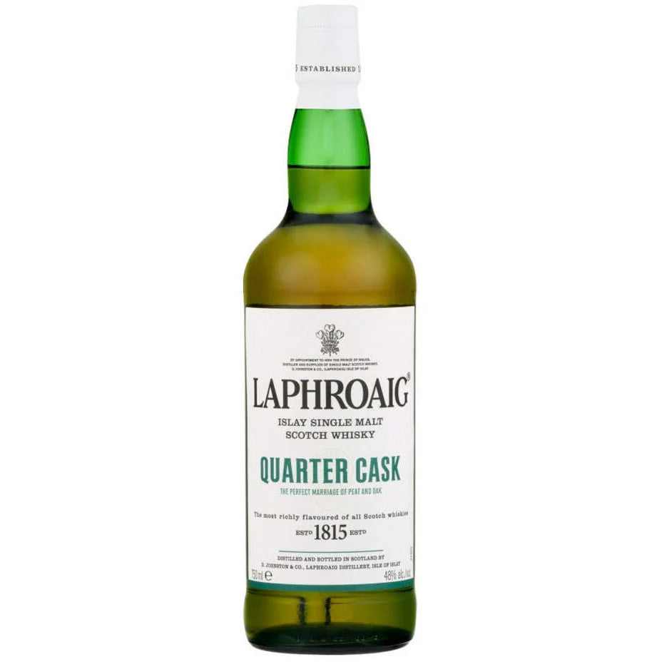 Laphroaig Quarter Cask offers an irresistible doubling of flavor, due to the double maturation in two barrels made of American oak. Still-maturing whisky from standard ex-bourbon barrels is transferred to quarter casks and left to rest in Laphroaig's warehouse just a stone's throw from the Atlantic shore. Matured in smaller casks for increased contact with the oak, this whisky brings the classic smokiness of peat with hints of coconut and banana to the nose. Deep, complex, and smoky, yet surprising the palate with a gentle sweetness, finishing long and drying appropriately with smoke and spice.