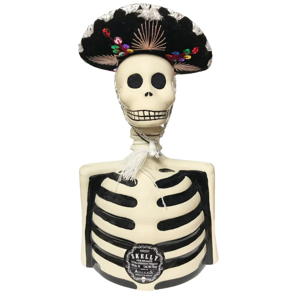 Experience the lively essence of Mexico with the Azulejos "Skelly" with Mariachi Hat Añejo Tequila. Perfect for Día de los Muertos and Halloween celebrations, this exclusive limited edition honors Mexico’s vibrant musical and cultural traditions. Encased in a beautifully hand-painted ceramic skull decanter topped with an iconic Mariachi hat, it serves as a striking collector’s item that captivates both the eye and the palate.