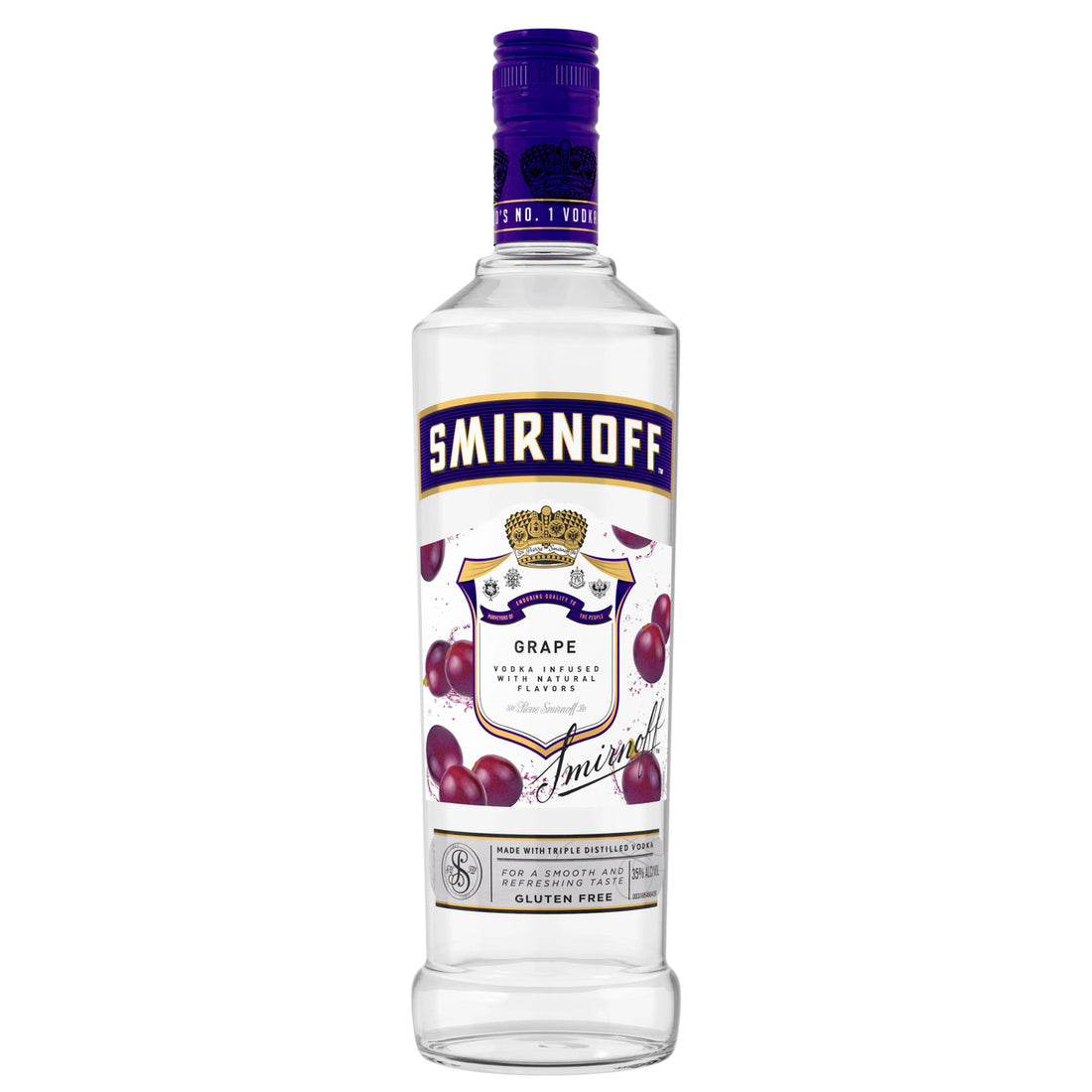 Sweet, fruity and a little tart. Smirnoff Grape is made with vodka and infused with natural flavors to give that juicy grape finish. Indulge in the refreshing taste of juicy grapes with every sip of Smirnoff Grape Vodka! Made with real vodka and infused with natural flavors, this delectable spirit brings the perfect balance of sweetness and tartness to any cocktail. Enjoy it on its own or mixed in your favorite drink for a burst of grape goodness. Order your bottle of Smirnoff Grape Vodka today and elevate your drinking experience to a whole new level!