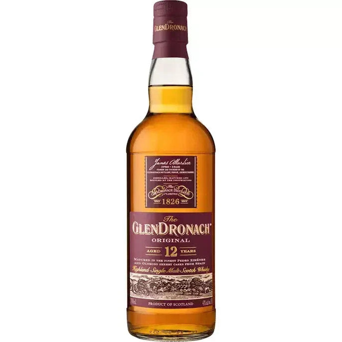 This superb richly sherried single malt is matured for at least 12 years in a combination of the finest Spanish Pedro Ximénez and Oloroso sherry casks. Natural colour and bottled at 43%, The GlenDronach 12 year old is a sweet, creamy dram.