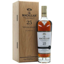 The Macallan 25 Years Old showcases the unrivaled commitment to the mastery of wood and spirit for which The Macallan has been known since it was established in 1824. A distinguished and timeless classic with the deep natural mahogany color, rich flavor complexity and lengthy finish that only twenty five years in exceptional Sherry-seasoned oak casks can deliver.